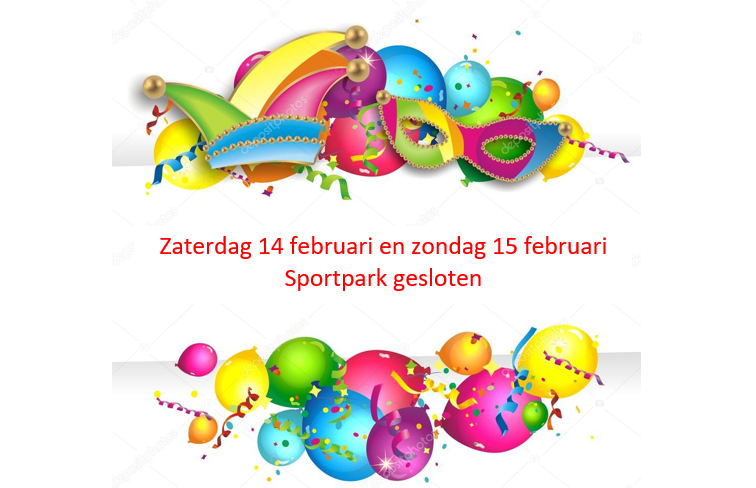 Gedurende de carnavalsvakantie is de kantine gesloten van 14 t/m 22 februari. Het sportpark zal volledig gesloten zijn op zaterdag 14 februari en zondag 15 februari. Er kan worden getraind van 16 t/m 19 februari door teams die daar behoefte aan hebben (geen oefenwedstrijden).